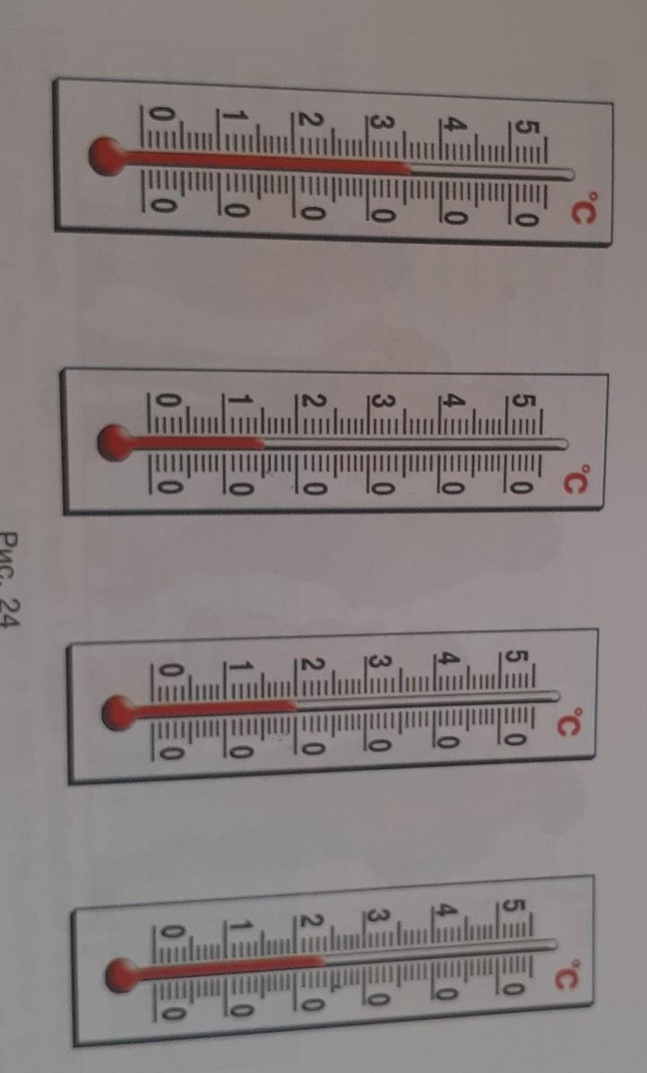 108. Какую температуру показывает каждый термометр на рисунке 24