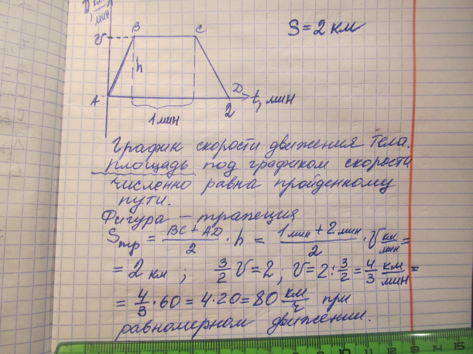 Пожалуйста, решите с объяснением задачку. Электричка проехала от одной станции до другой за 2 мин. Расстояние между станциями 2 км. При этом половину времени электричка ехала равномерно, а остальное время ушло на разгон и торможение, в течение которых электричка двигалась равноускоренно, но с разными по модулю ускорениями. Какова скорость равномерного движения?