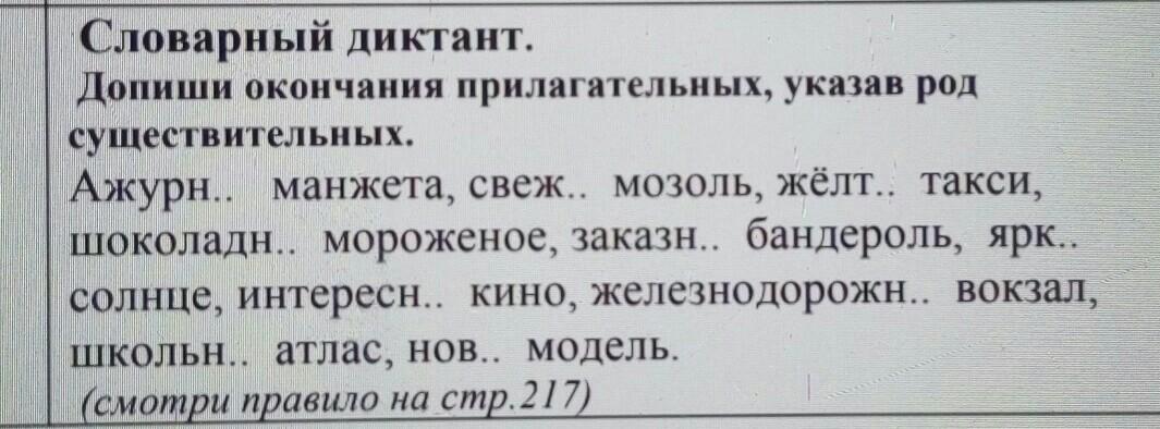 (жён) , жёлтое такси(средн) , шоколадное мороженое(средн) , заказной бандероль(жён), яркое солнце(жён) , интересное кино(средн) , железнодорожный вокзал(муж) , школьный атлас(муж) , новая модель(жён)