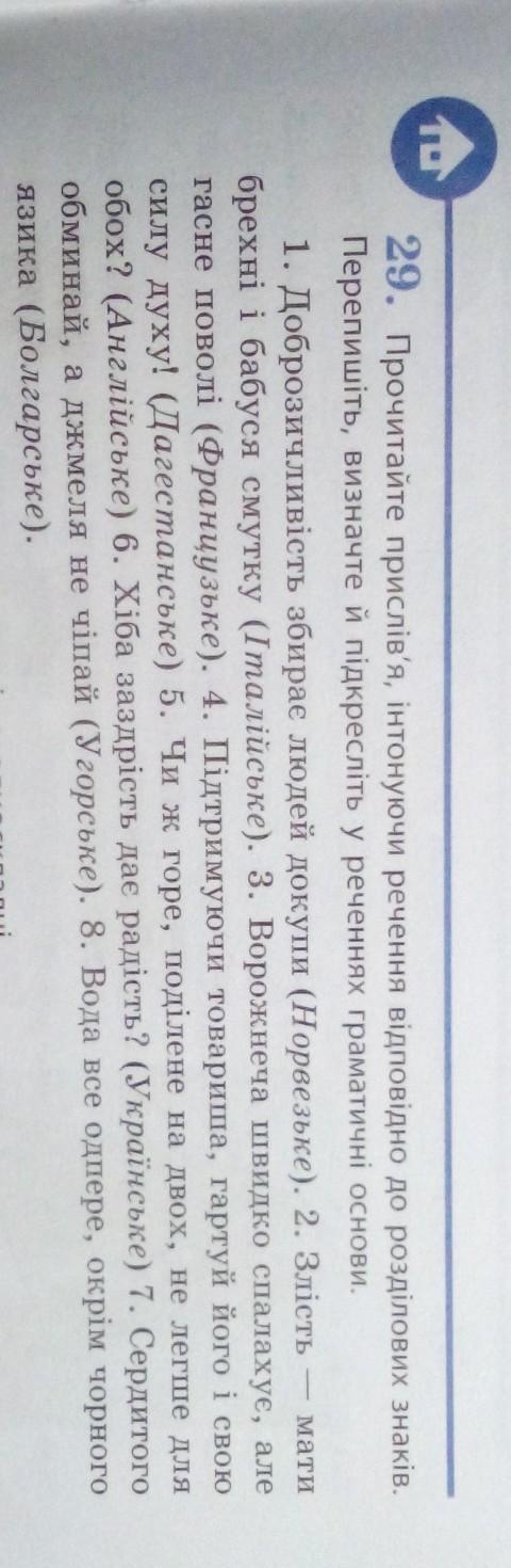 1. Доброзичливiсть забирае людей докупи. 2. Злiсть - мати брехнi i бабуся смутку.3. Ворожнеча швидко спалахує, але гасне по волi. 4. Пiдтримаючи товариша, гартуй його i свою силу духу! 5. Чи ж горе, подiлене на двох, не легше для обох? 6. Хiба заздрiсить дае радiсть? 7. Сердитого обминай, а джмеля не чiпай. 8. Вода все одперне, окрiм чорного язика.