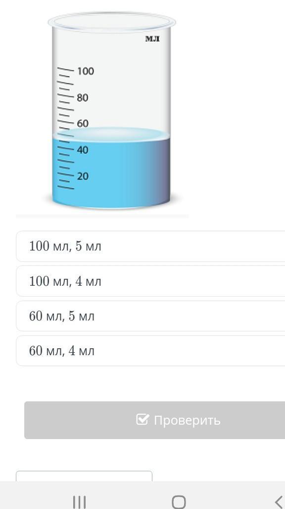 диапазон измерения 100 мл , половина цены деления это 5 мл
