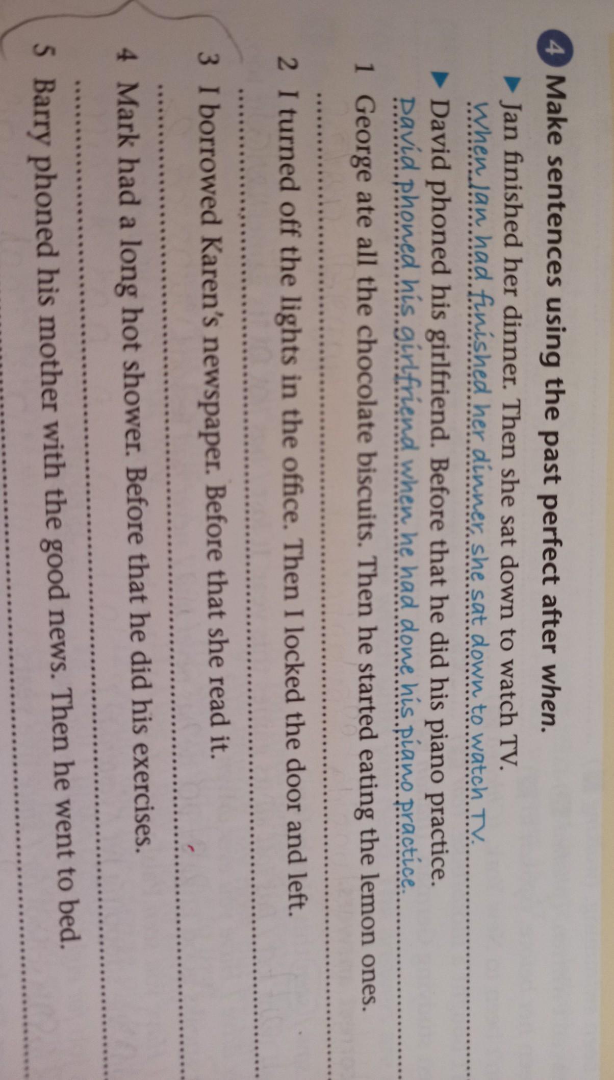 1. George had eaten all the chocolate biscuits and then he started eating the lemon ones.