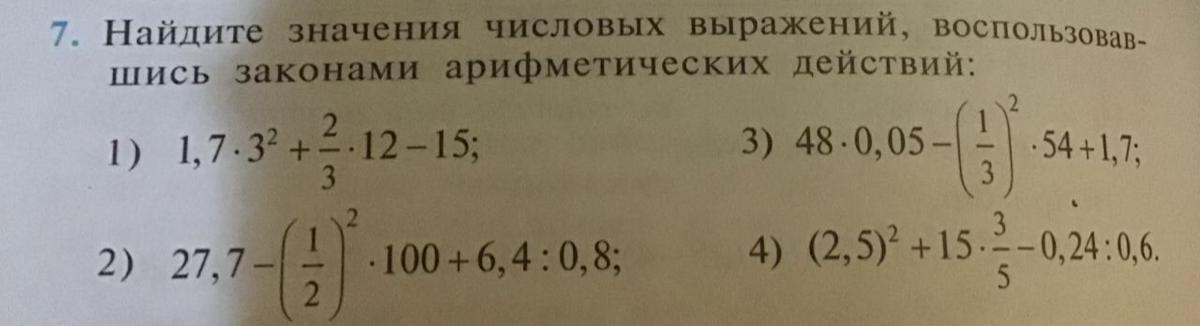 (2,5)²+15×2/3-0,24:0,6 =1. Возводим 2,5 в квадрат и получаем 25/4.2. Умножаем 15 на 2/3 и получаем 10.