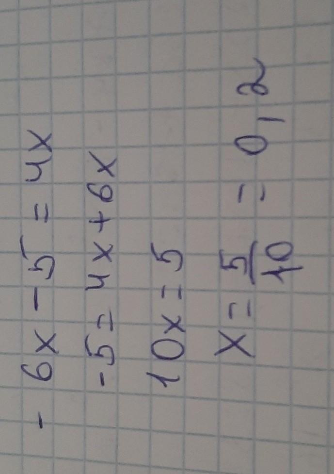 -6x-5=4x