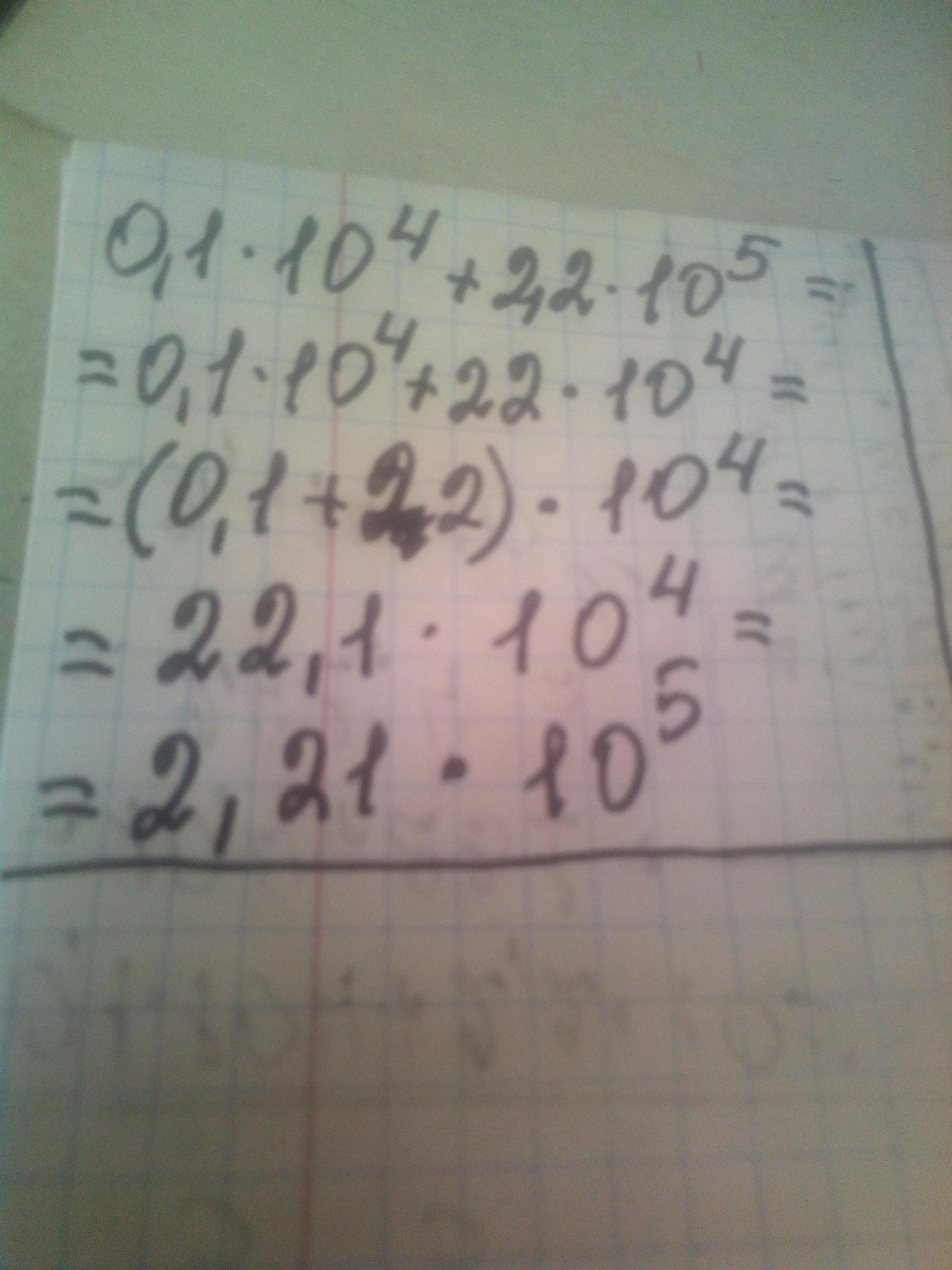 Выполни действия (ответ запиши в стандартном виде): 0,1⋅10^4+2,2⋅10^5 = ⋅ .