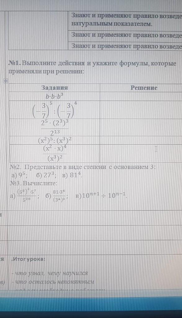 Объяснение: Повтори свойства степеней. В третьем задании плохо видно цифры, так что сам.