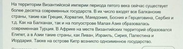 Запиши названия современных государств, которые входили в Византийскую империю (не меньше 5).