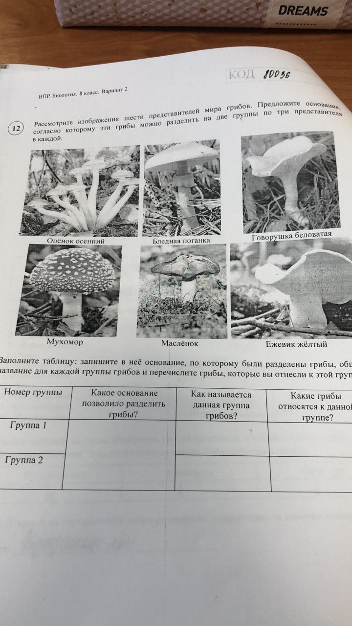 в первую идут: опенек осенний, масленок, ежевик жёлтый. во вторую: мухомор, бледная поганка, говорушка беловатая.