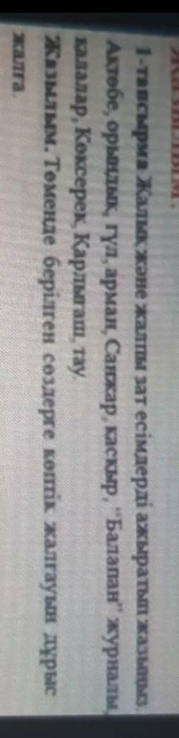 Жалқы зат есімдер: Ақтөбе, Санжар, Балапан журналы, Көксерек, Қарлығаш.