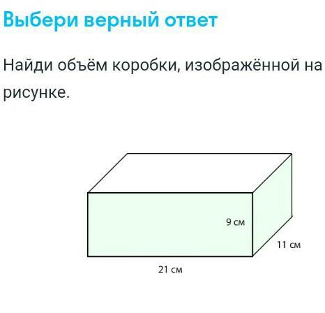 Нужно решать по формуле. V=abc; V=21*9*11=2079