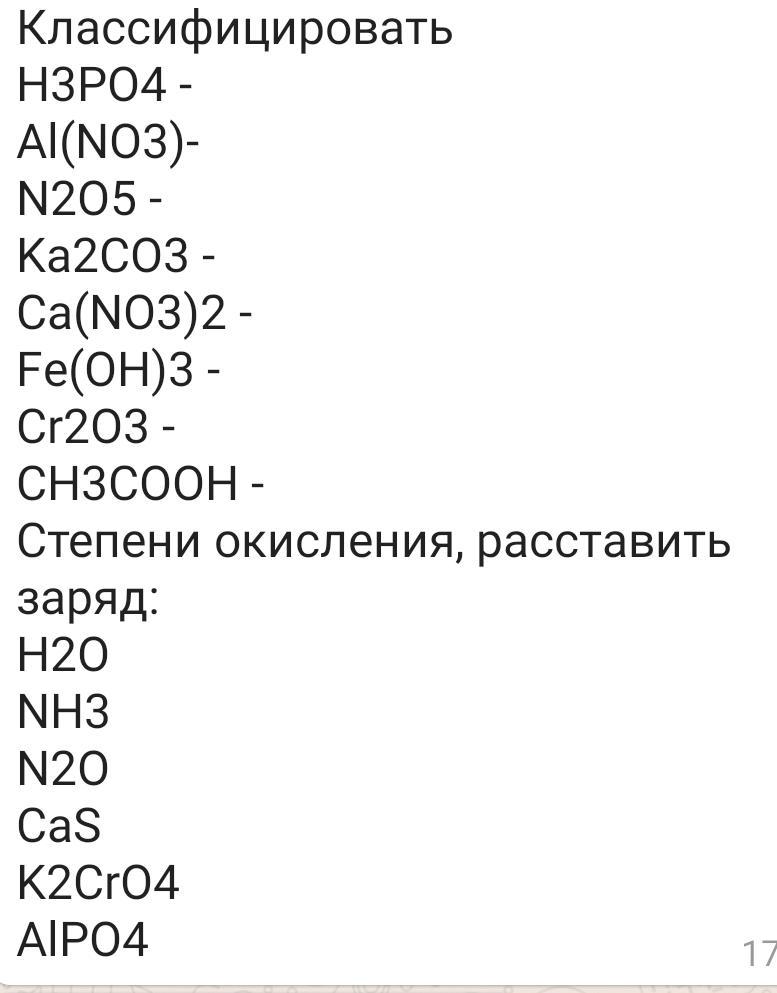 H⁺¹₂O⁻² , N⁻³H⁺¹₃ , N⁺¹₂O⁻² , Ca⁺²S⁻² , K⁺¹₂Cr⁺⁶O⁻²₄ , Al⁺³P⁺⁵O⁻²₄