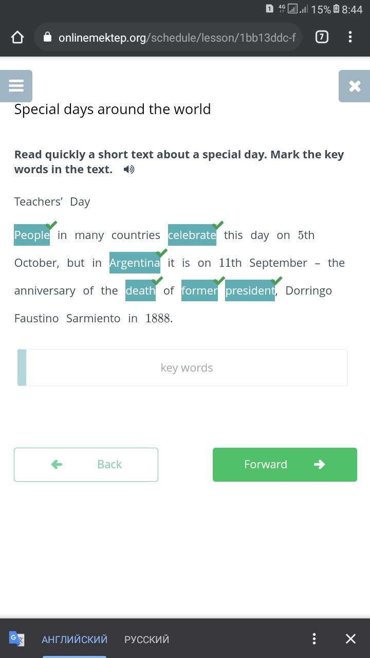 Read quickly a short text about a special day. Mark the key words in the text. Билим ленд 8 класс