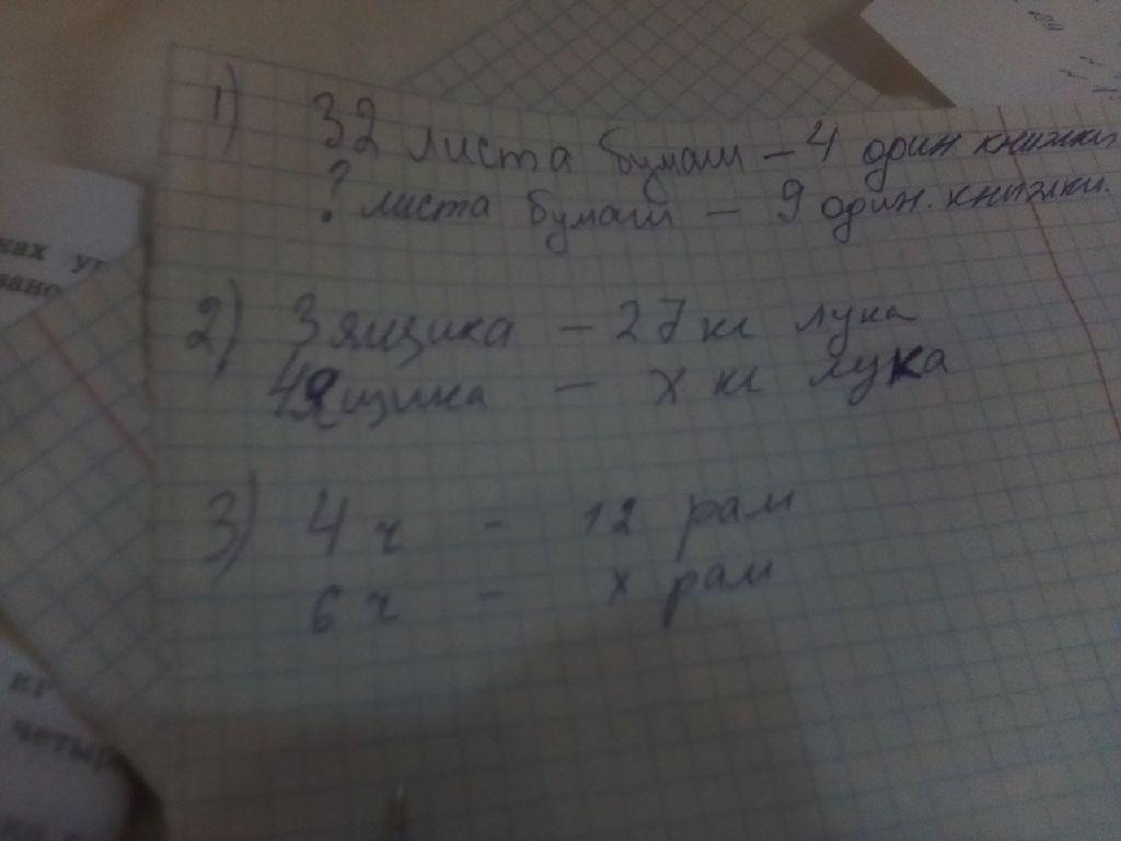 2. 3 ящика - 27 кг лука.=> 1 ящик= 27/3=9кг лука