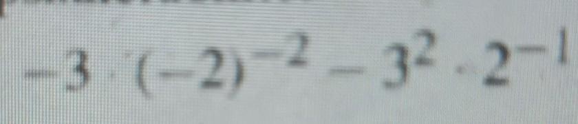 -3*(-2)^{-2}-3^2*2^{-1}=-3*\frac{1}{(-2)^2}-9*\frac{1}{2}=-\frac{3}{4}-\frac{9}{2}=-\frac{3}{4}-\frac{18}{4}=-\frac{21}{4}=-5\frac{1}{4}