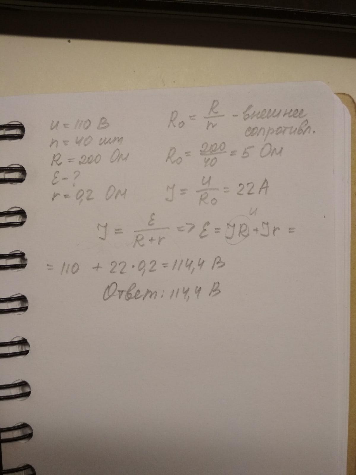 40 лампам по 200 Ом каждая. Определить э. д. с. генератора, если его внутреннее сопротивление 0,2 Ом. Срочно прошу хельп