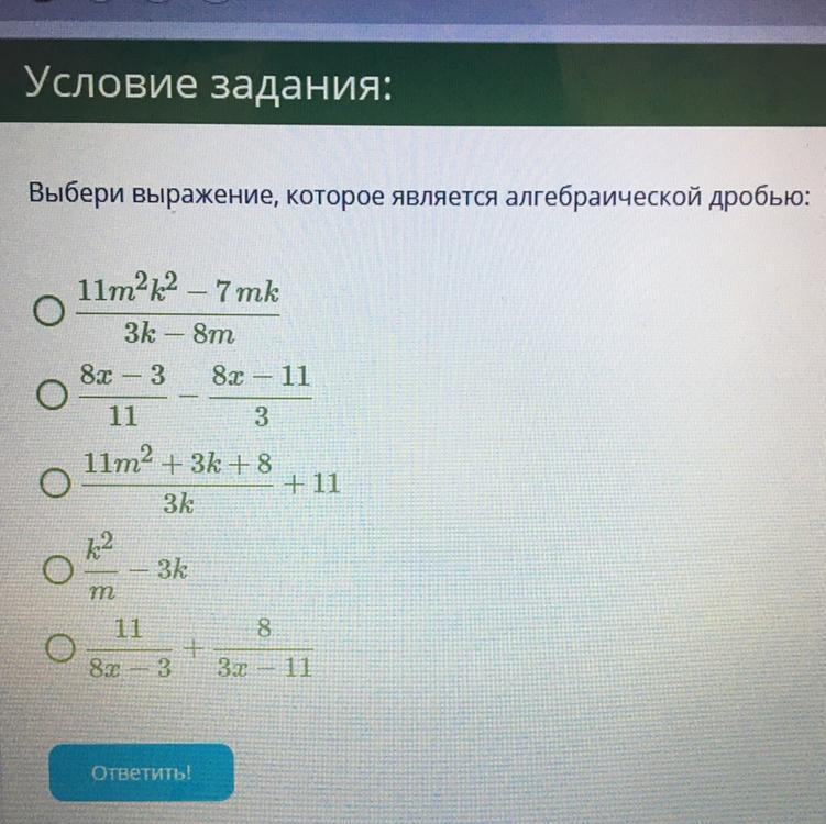Знаменатель и числитель дроби являются многочленом. Соответственно это алгебраическая дробь.