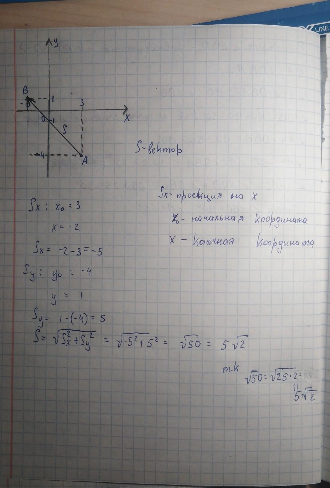 S(вектор)= -5^2+5*2= 50(в корне) =5и 2 в корне