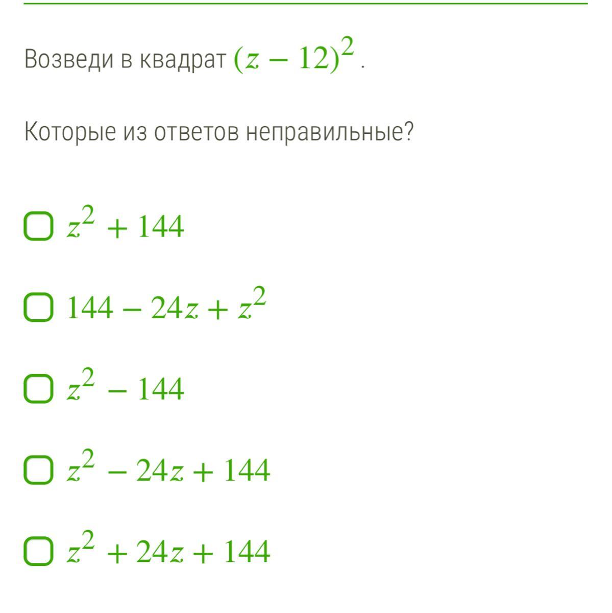 (z-12)² = z² - 2* z* 12 + 12² = z² - 24z + 144