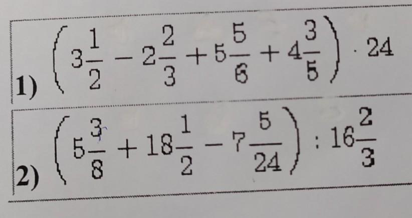 1) (3 1/2 - 2 2/3 + 5 5/6 + 4 3/5) * 24 =
