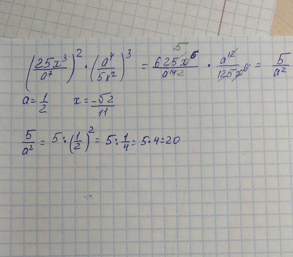 там х сокращаются, и 625 сокращается на 125