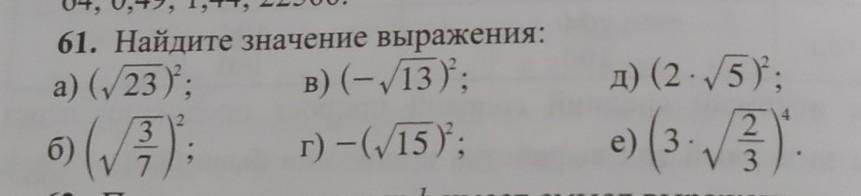 г) (-√15)²=(-√15)*(-√15)=15;