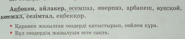 • Карамен жазылған сөздерді қатыстырып, сөйлем құра.