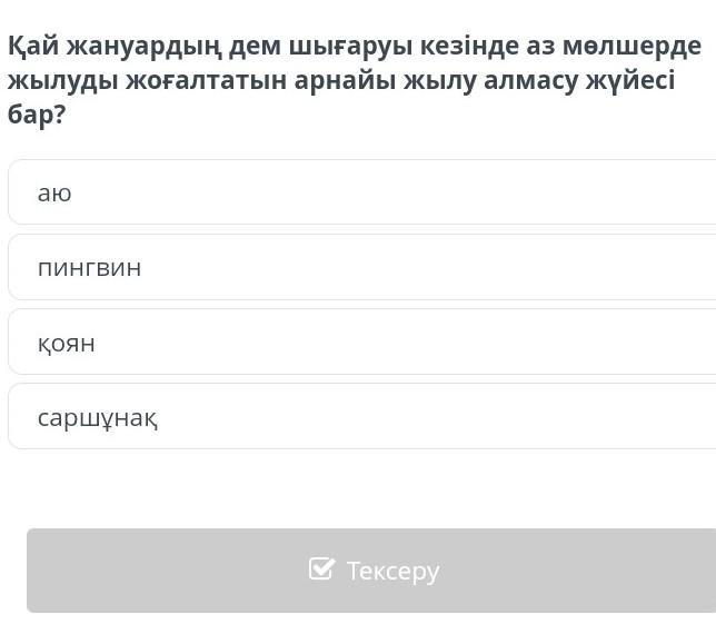 Қай жануардың дем шығаруы кезінде аз мөлшерде жылуды жоғалтатын арнайы жылу алмасу жүйесі бар?