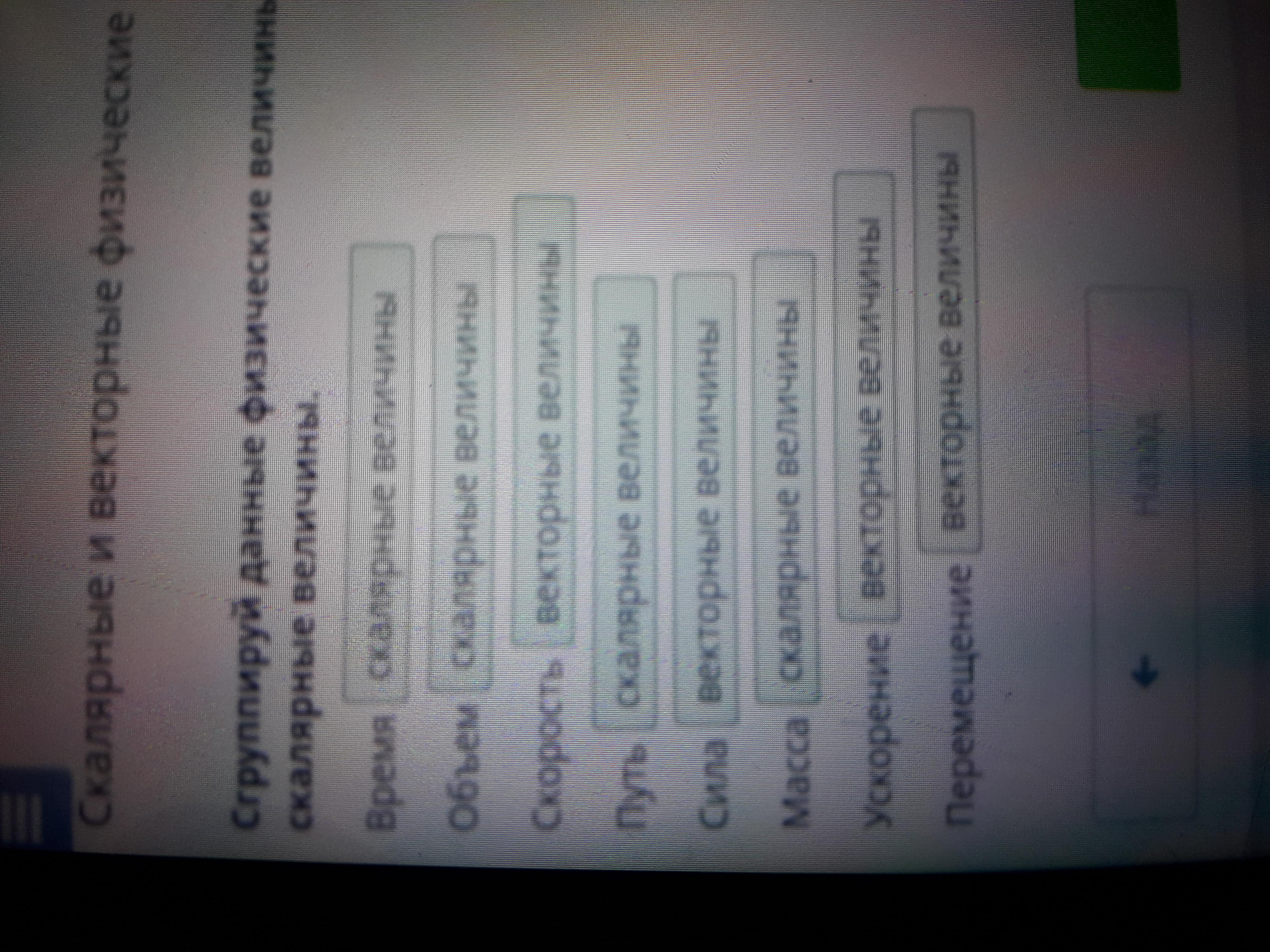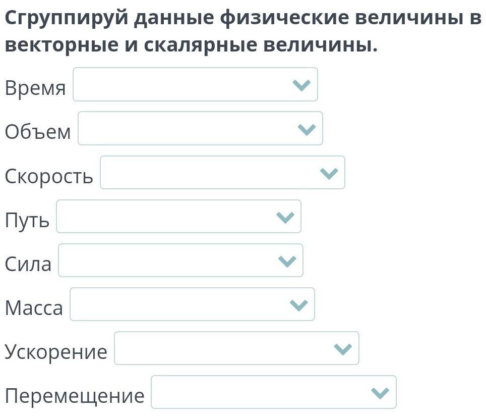Сгруппируй данные физические величины в векторные и скалярные величины.