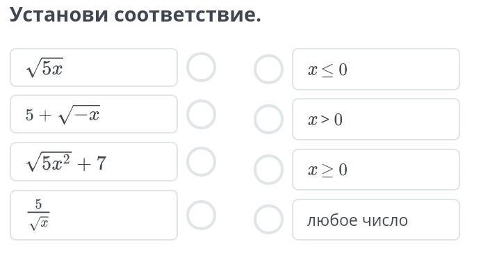 Подкоренное выражение всегда неотрицательно. Так как 5 – положительное число, то х будет неотрицательным (положительное*неотрицательное=неотрицательное), тоесть х>=0.