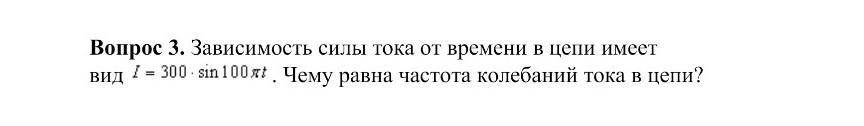 зависимость силы тока от времени в цепи имеет вид I=300 sin 100 Пt. Чему равна частота тока в цепи ?