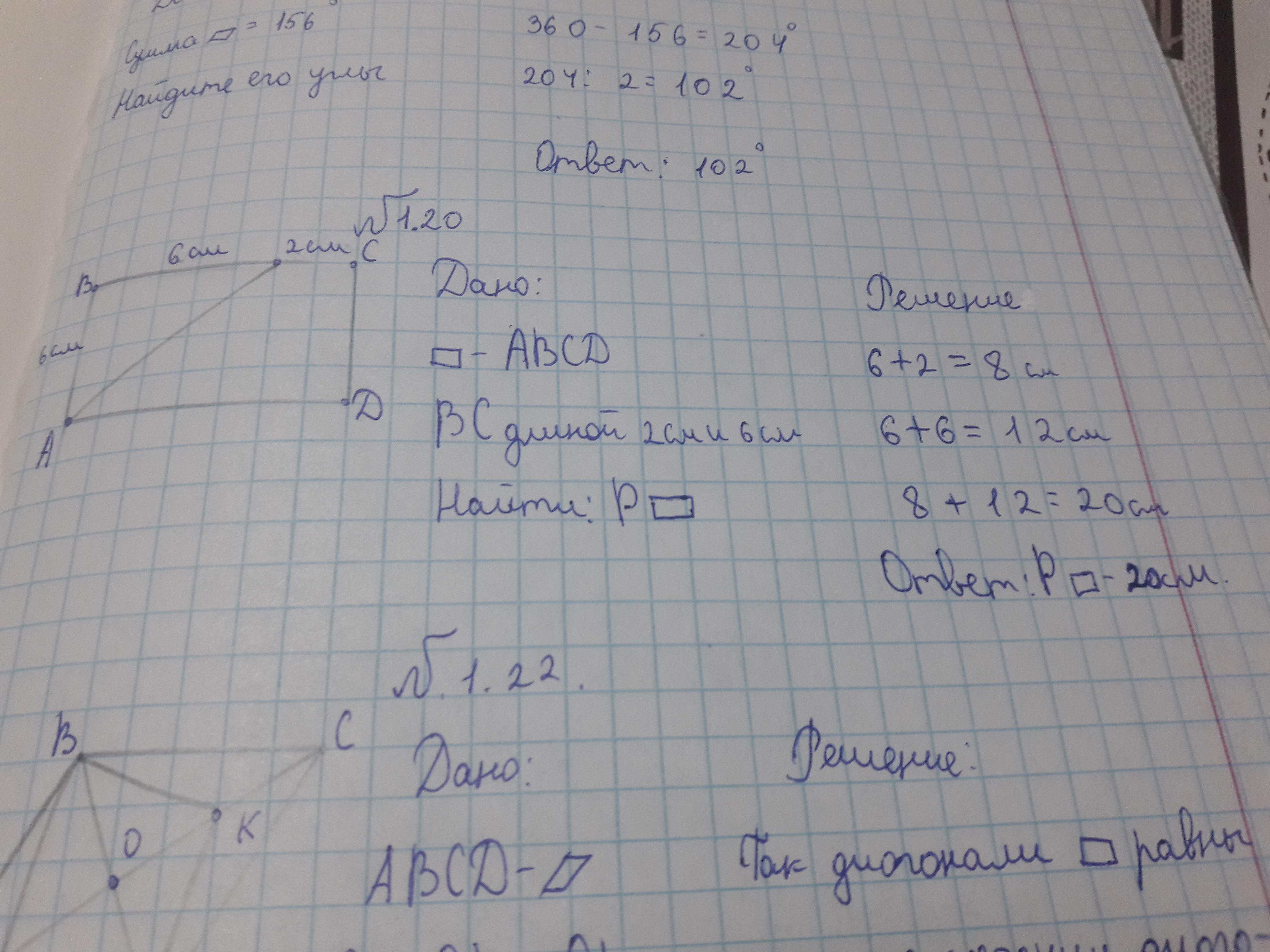 4)сторона ВС паралельна строне АД следов. уголАКВ=углуКАД=45 из этого след. сто треуг ВАК равнобедр. и АВ=ВК=2см