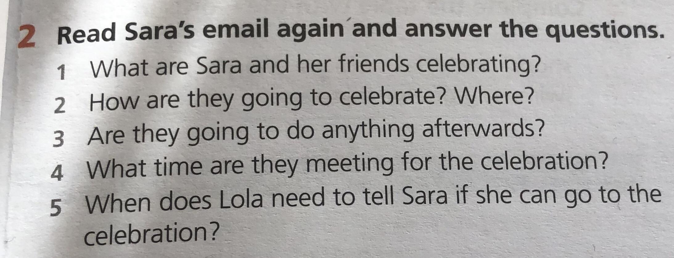 Read sarah's email again and answer the questions