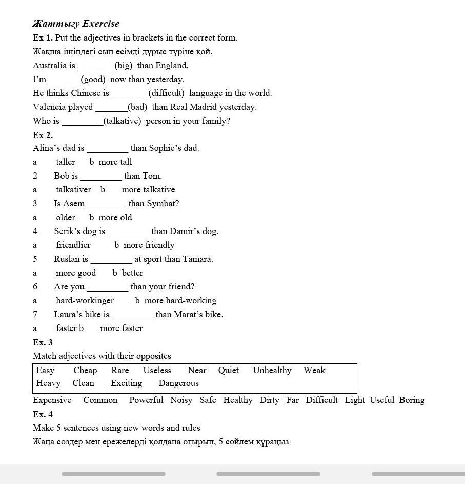 Задания 1 и 2 проверяют знания степени сравнения прилагательных (когда мы что-то сравниваем).