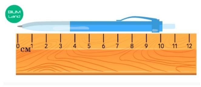 Суретті талдап, дұрыс жауапты таңда. Сызғышпен қаламсап ұзындығы өлшенді (суретке қара). Нәтиже қалай жазылуы керек?