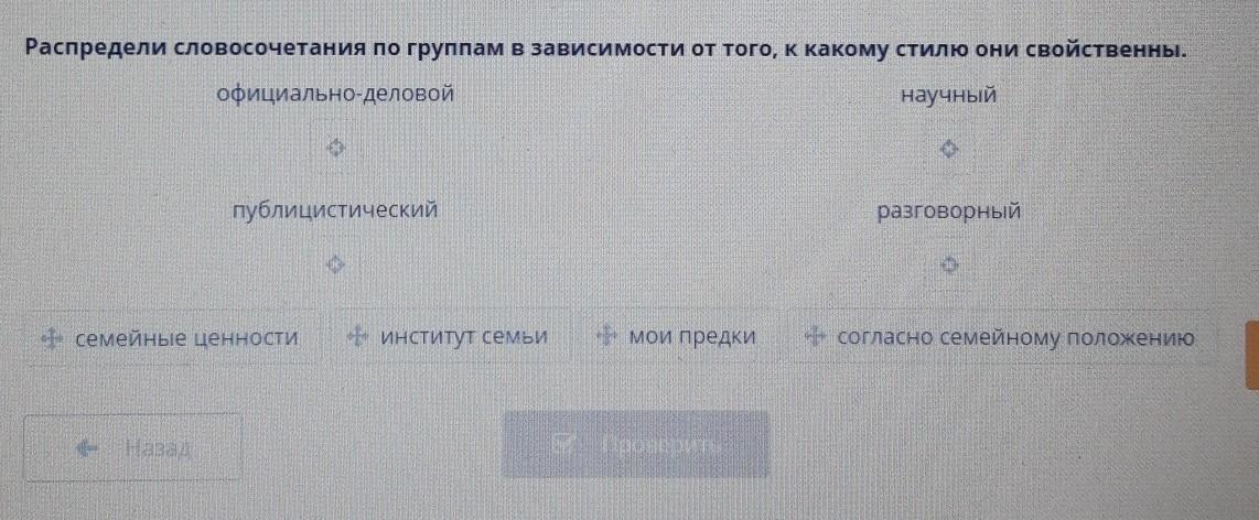 Распредели словосочетания по группам в зависимости от того, к какому стилю они свойственны.