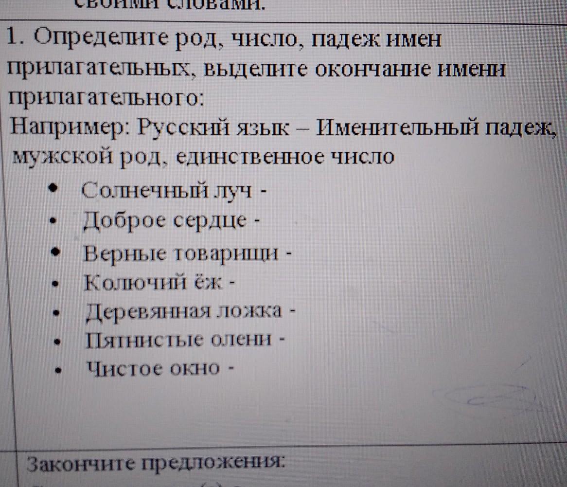 1. Определите род, число, падеж нмен