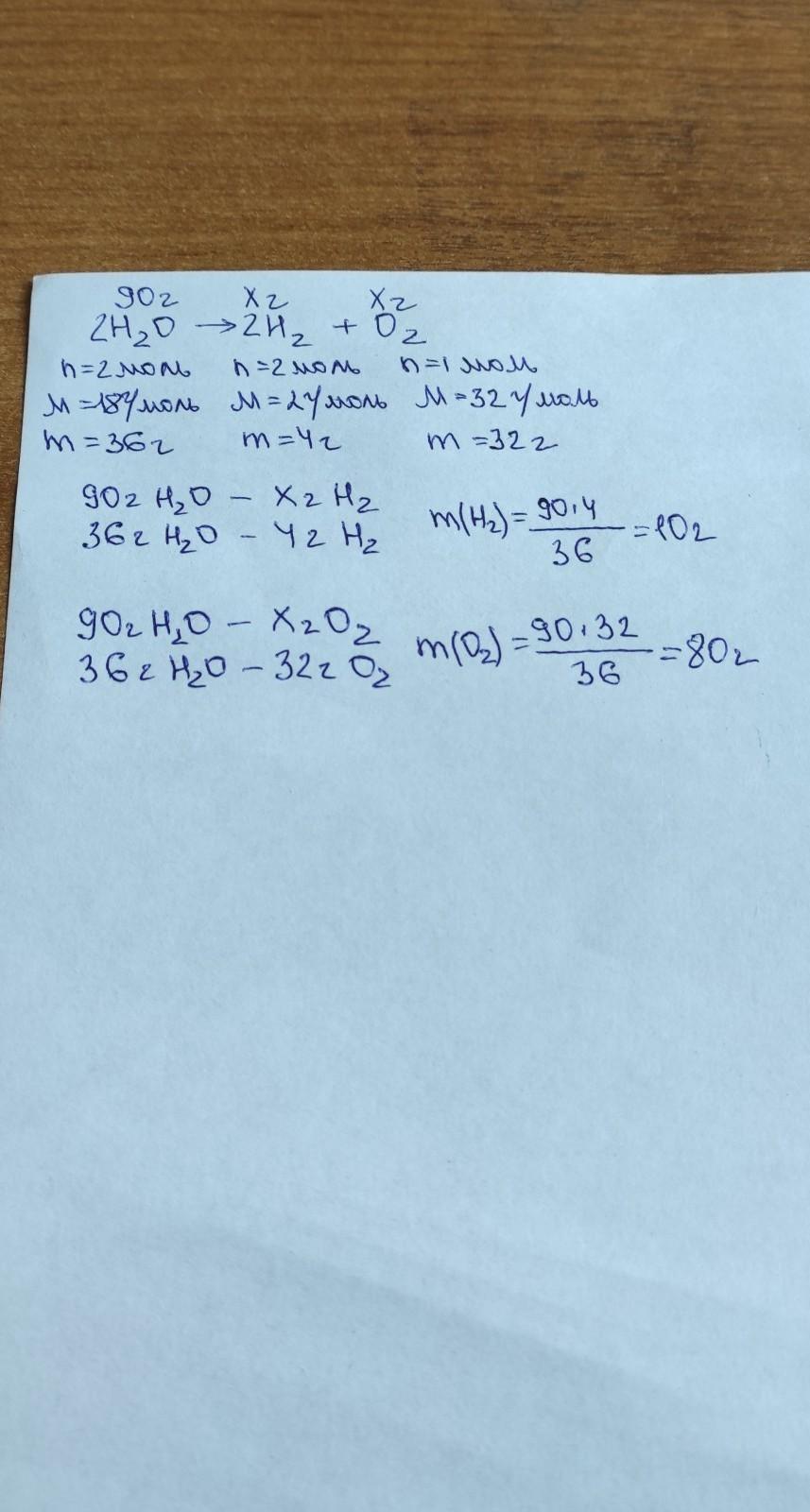 Вычислите массы водорода и кислорода (н.у.), которые образуются при разложении 90 г. воды. Решение запишите. Нужно очень сочно, 9 класс даю 35 балов