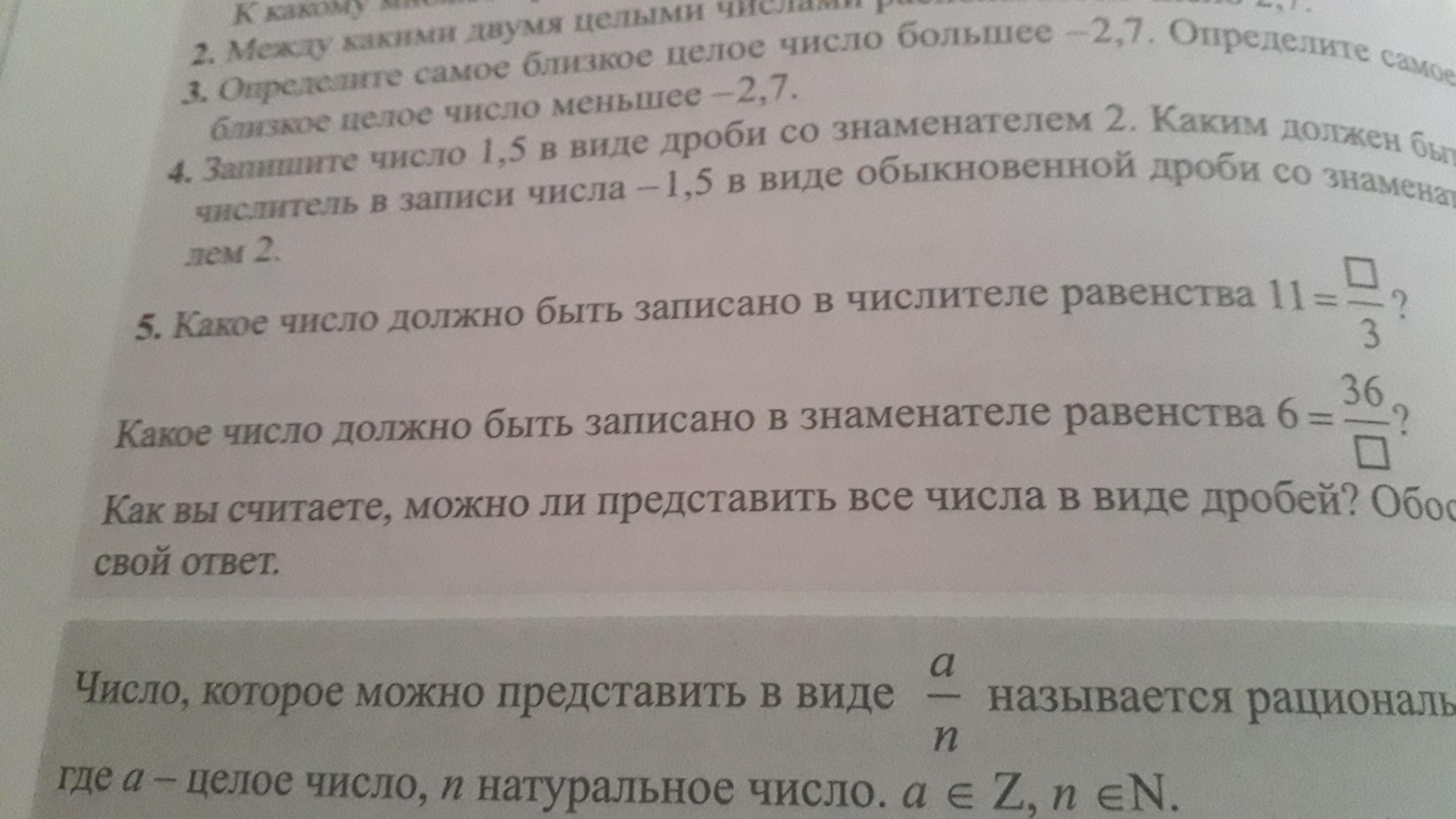 3) Да. Объяснение: приведите хотя-бы одно число, которое нельзя представить в виде дроби. Любое число можно записать как: (x - любое число) и это тоже будет дробью.