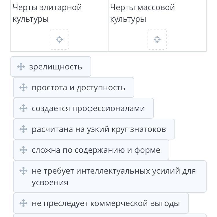 черты элитарной культуры: создаётся профессионалами, рассчитана на узкий круг знатоков, сложна по содержанию и форме, не преследует коммерческой выгоды.