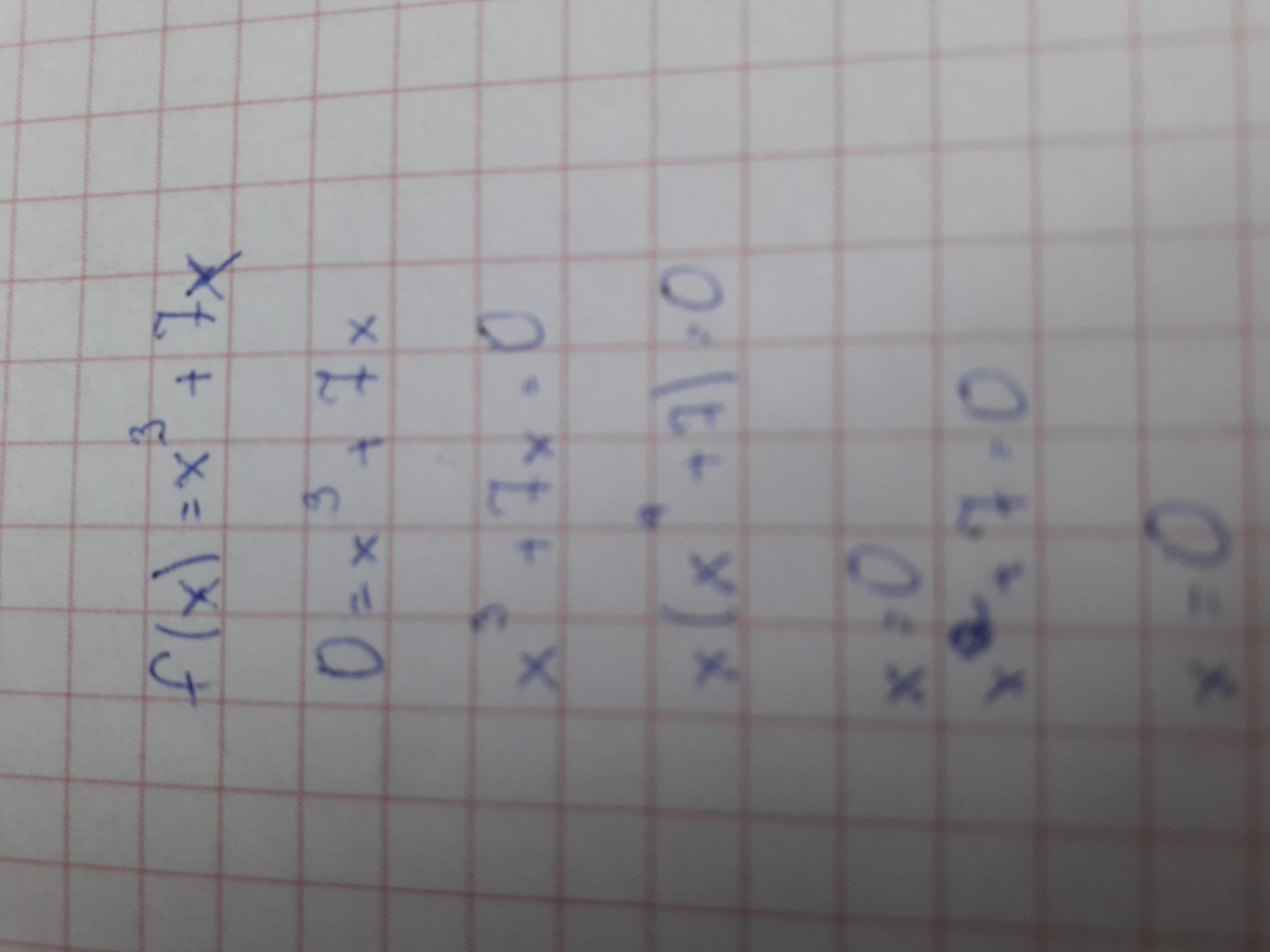 F(x)=x*3*+7x....0=x*3*+7x....x*3*+7x=0....x=0