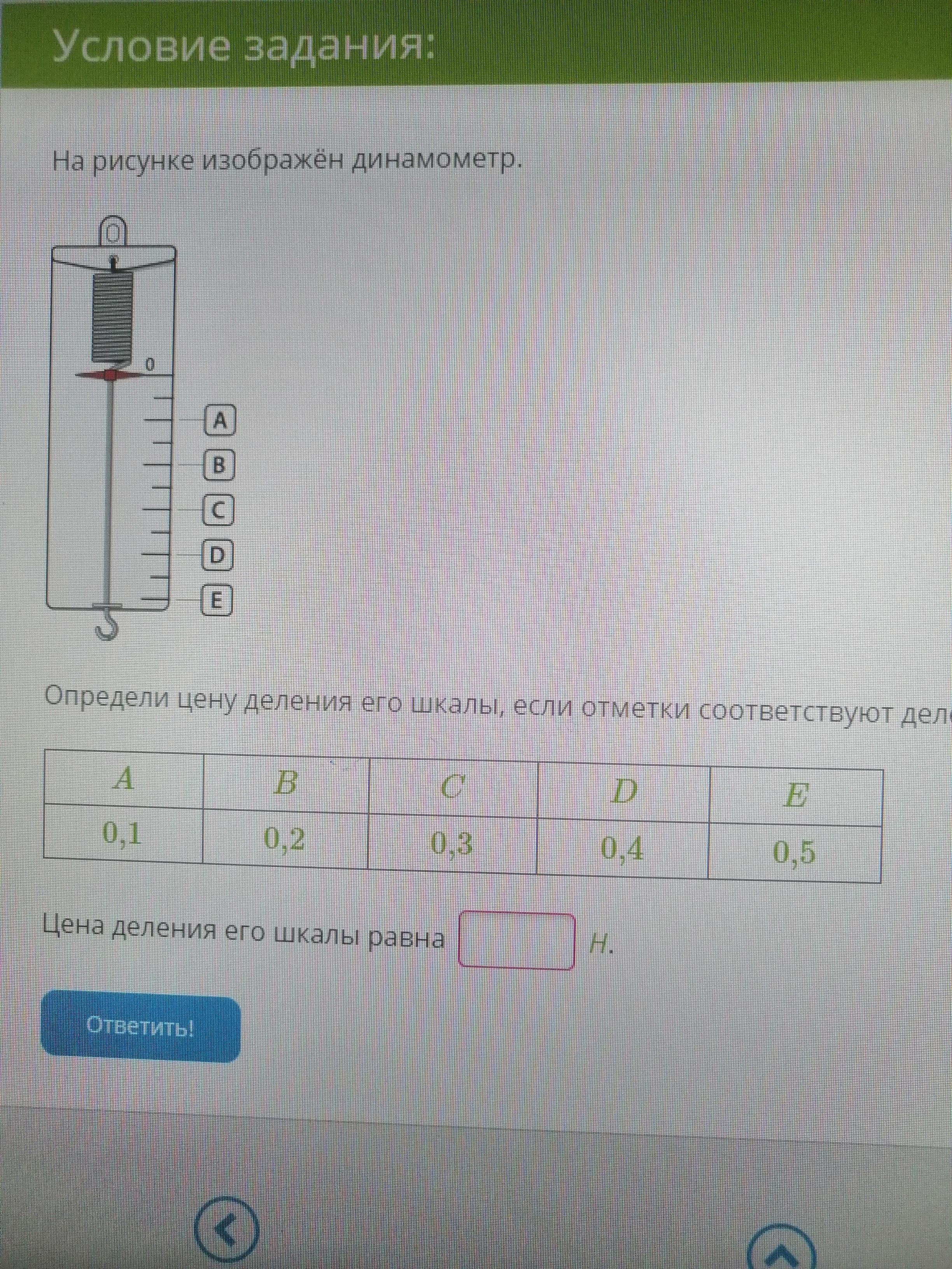Цена деления равна (В-А) :2= (0,2-0,1):2=0,05