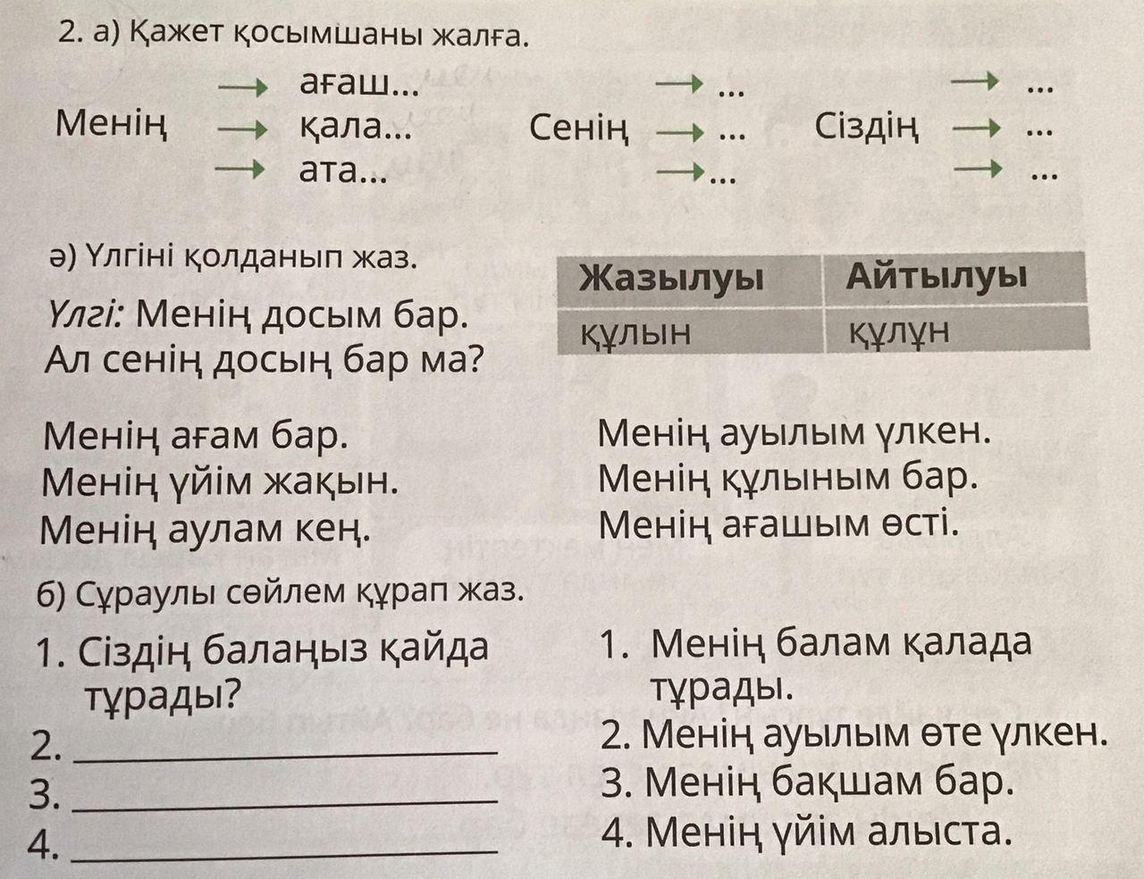 2. сиздин ауылыныз кандай?