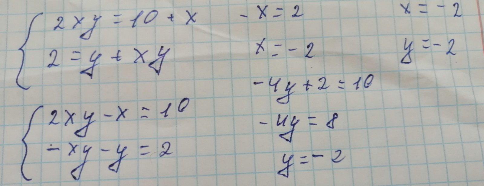 я узнал что х=-2 по тому что -х умножить на у-у=2
