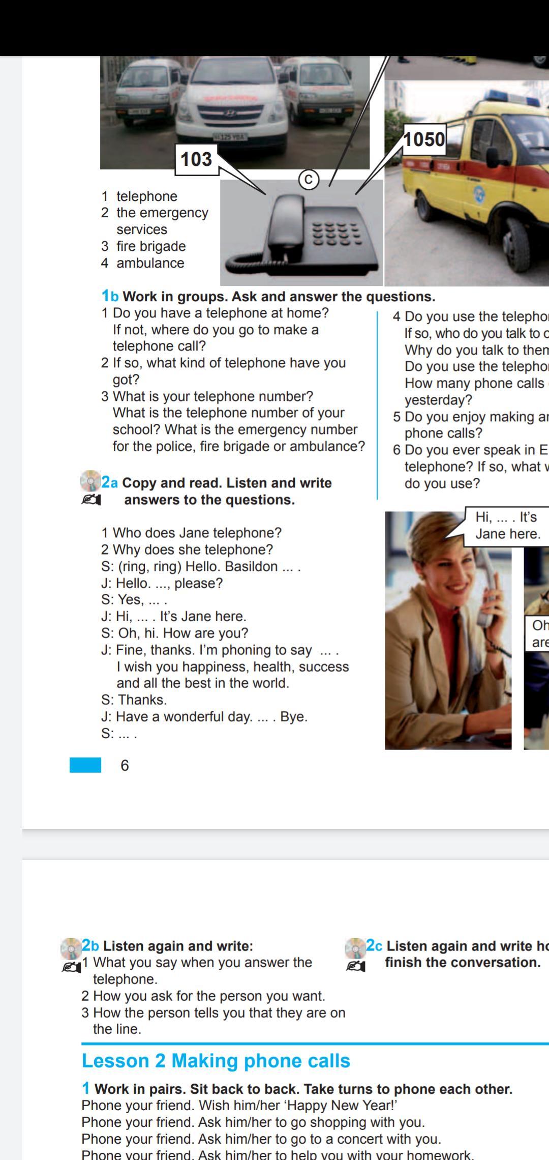 2a Скопируйте и прочтите. Слушайте и ответы на вопросы. 1 Кому звонит Джейн? 2 Почему она звонит? С: (кольцо, кольцо) Привет. Базилдон .... Дж .: Привет. ., пожалуйста? С: Да, Дж .: Привет ... Это Джейн. С: О, привет. Как вы? J: Хорошо, спасибо. Я звоню, чтобы сказать .... Желаю счастья, здоровья, успехов и всего наилучшего на свете. СУБЪЕКТ: Спасибо. J: Хорошего дня. .... До свидания. СУБЪЕКТ: .... ...
