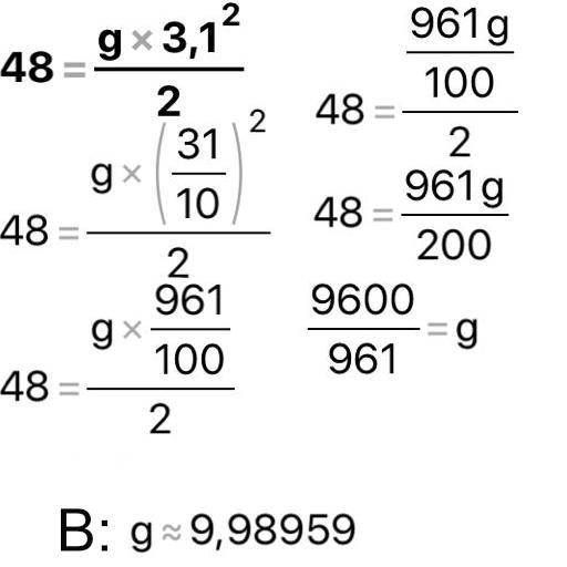 Галілей давав можливість кулям різної маси вільно падати з Пізанської вежі заввишки майже 48 м. Кулі досягали поверхні Землі майже одночасно приблизно за 3,1 с. Яке значення прискорення вільного падіння куль одержав Галілей