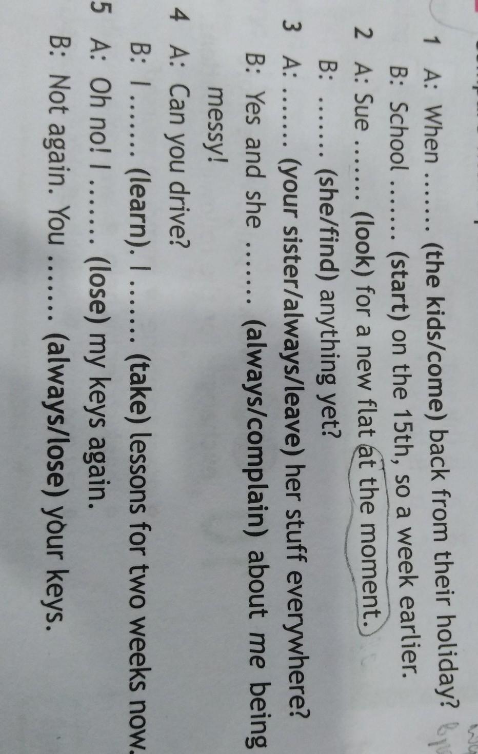 поставьте глаголы в нужной форме, рядом с предложением напишите подсказку (слова-спутники), напишите кого времени предложение