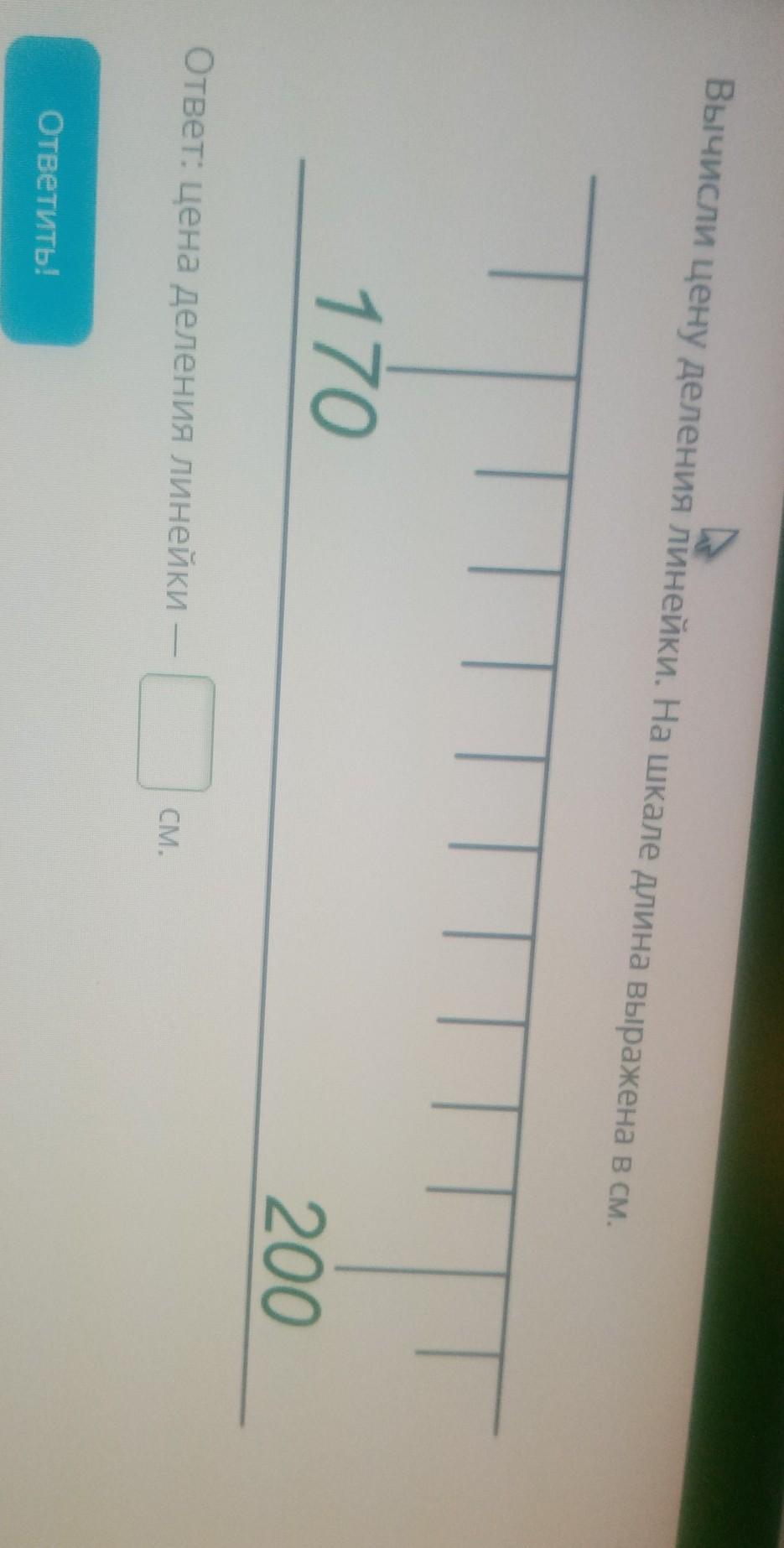 Вычисли цену деления линейки. На шкале длина выражена в см.