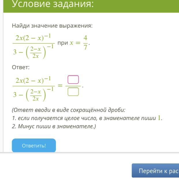 (2x(2-x)⁻¹)/(3-((2-x)/(2x))⁻¹)=[2x/(2-x)]/[3-2x/(2-x)]=[2x/(2-x)]/[(6-3x-2x)/[2-x]=