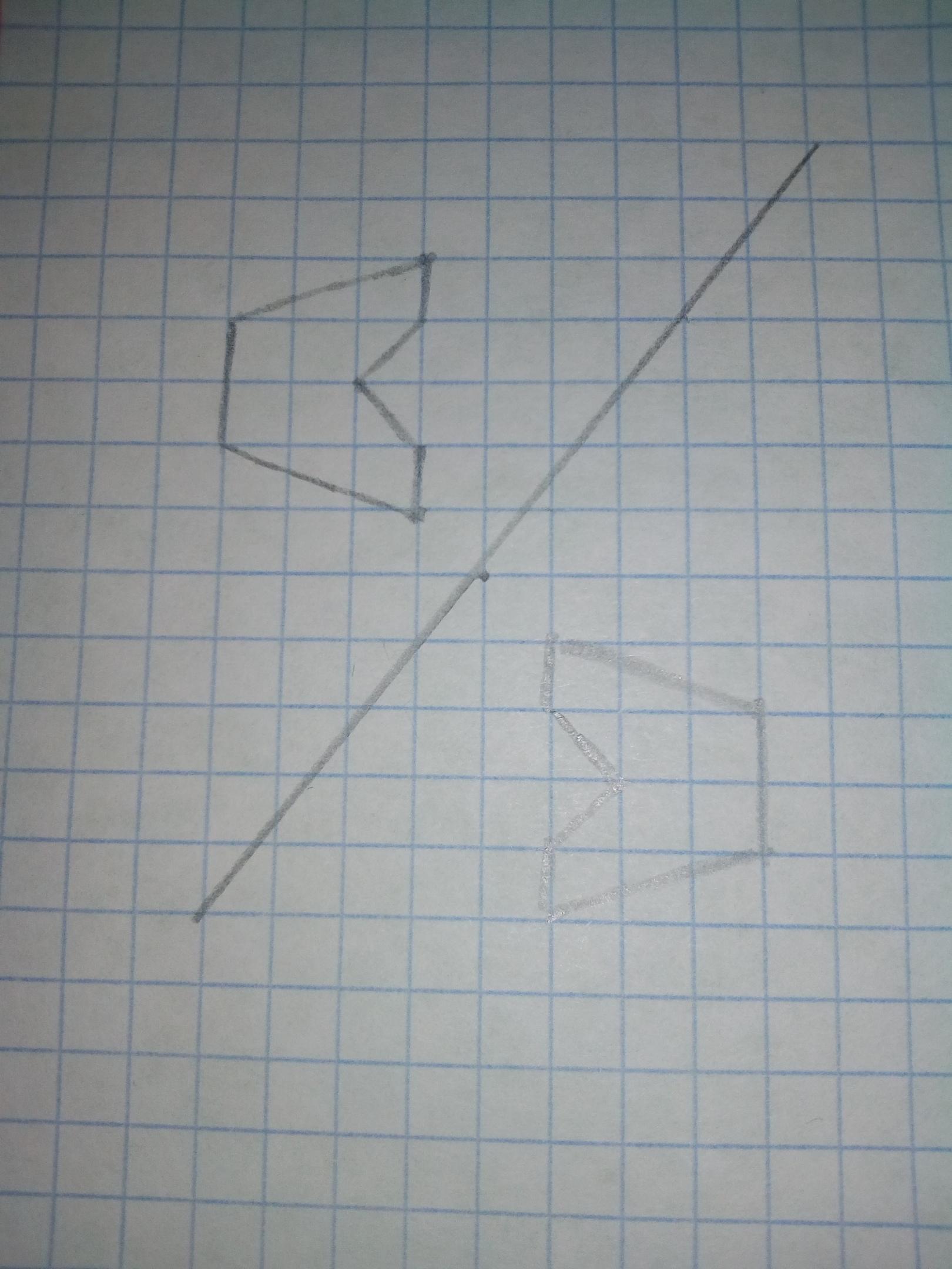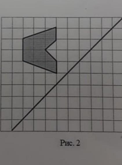 5.На рис. 1 на клетчатой бумаге изображены фигуры, симметричные относительно изображённой прямой. Нарисуйте на рис. 2 фигуру, симметричную заштрихованной фигуре относительно данной прямой. Рис. 1 Рис. 2