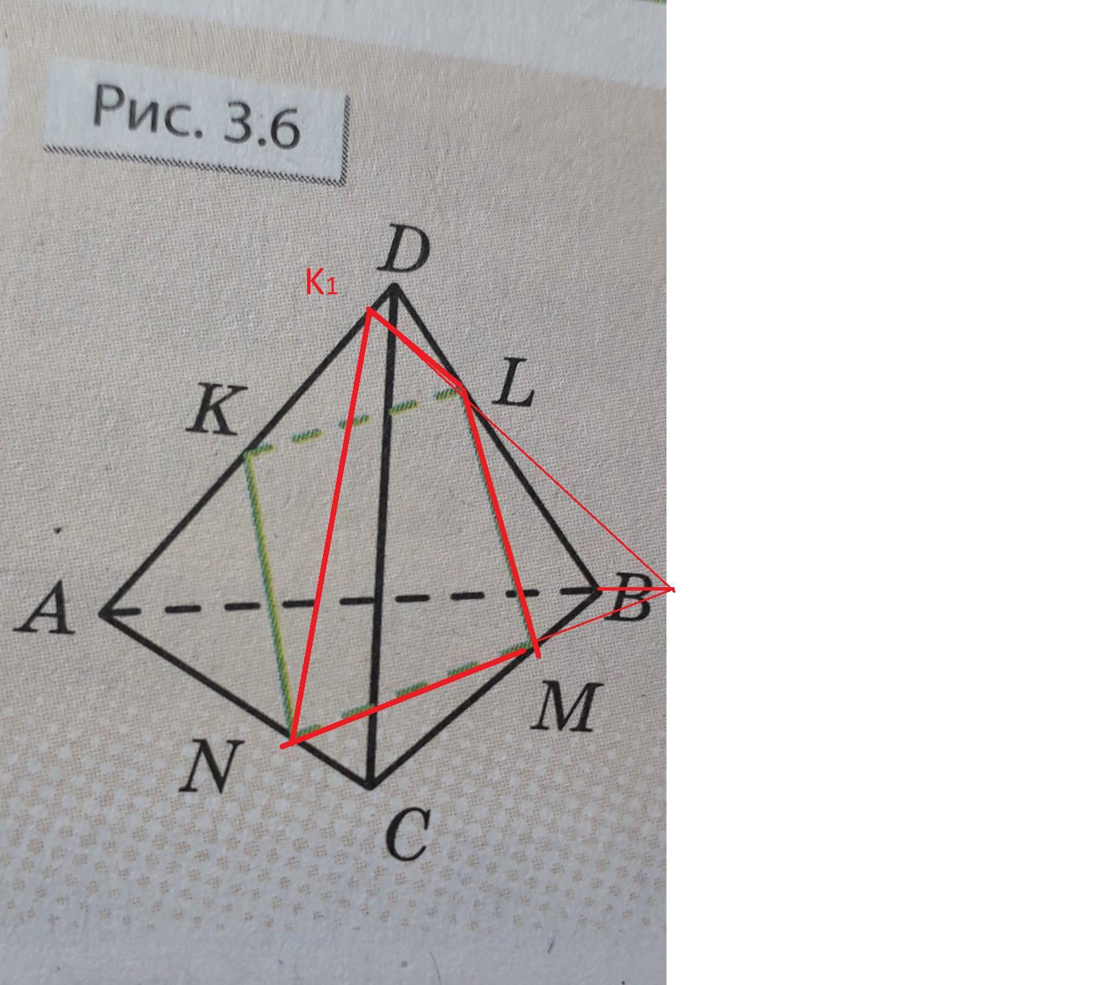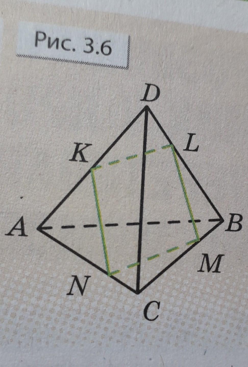 Чи може перерізом тетраедра ABCD площиною бути чотирикутник KLMN,зображений на рис.3.6?